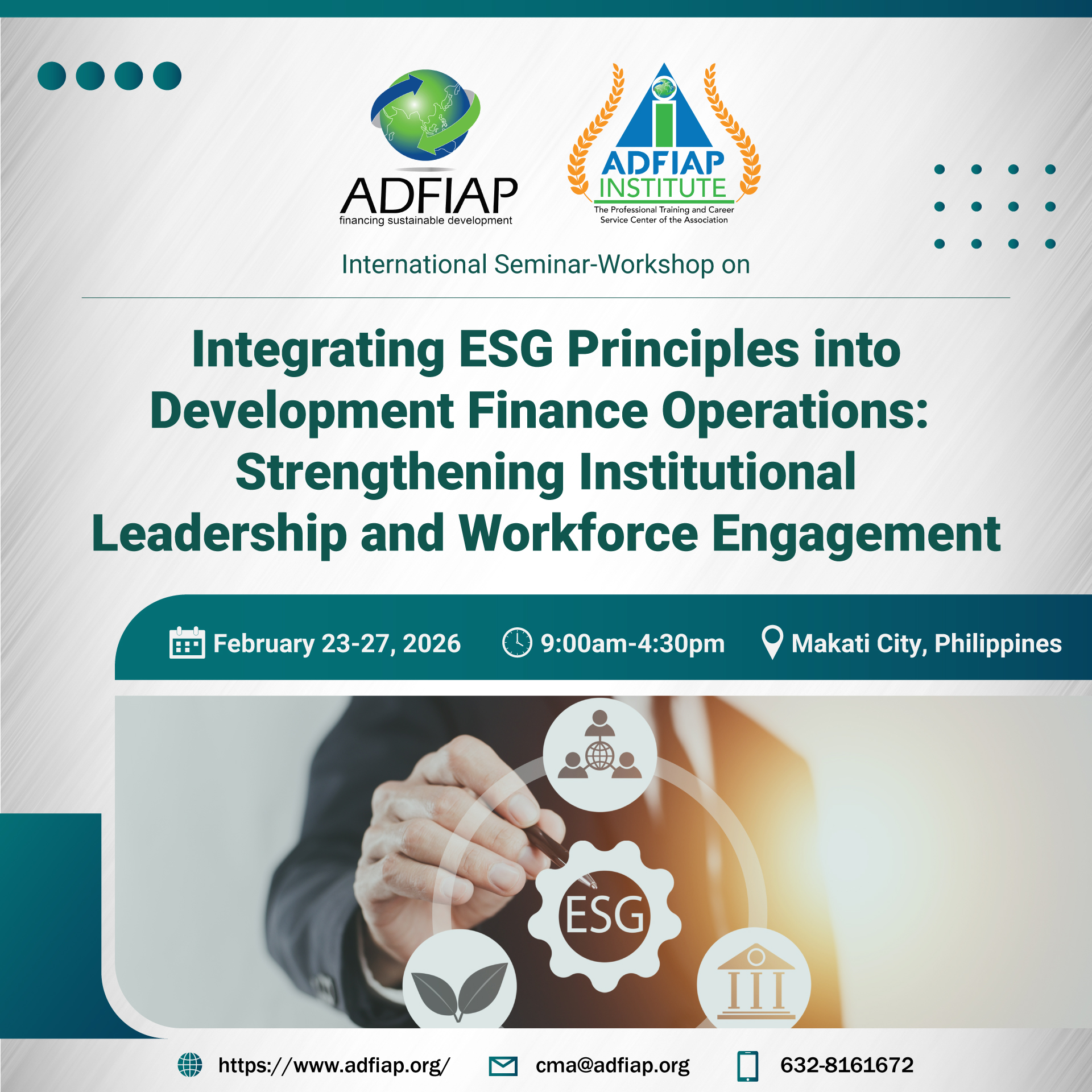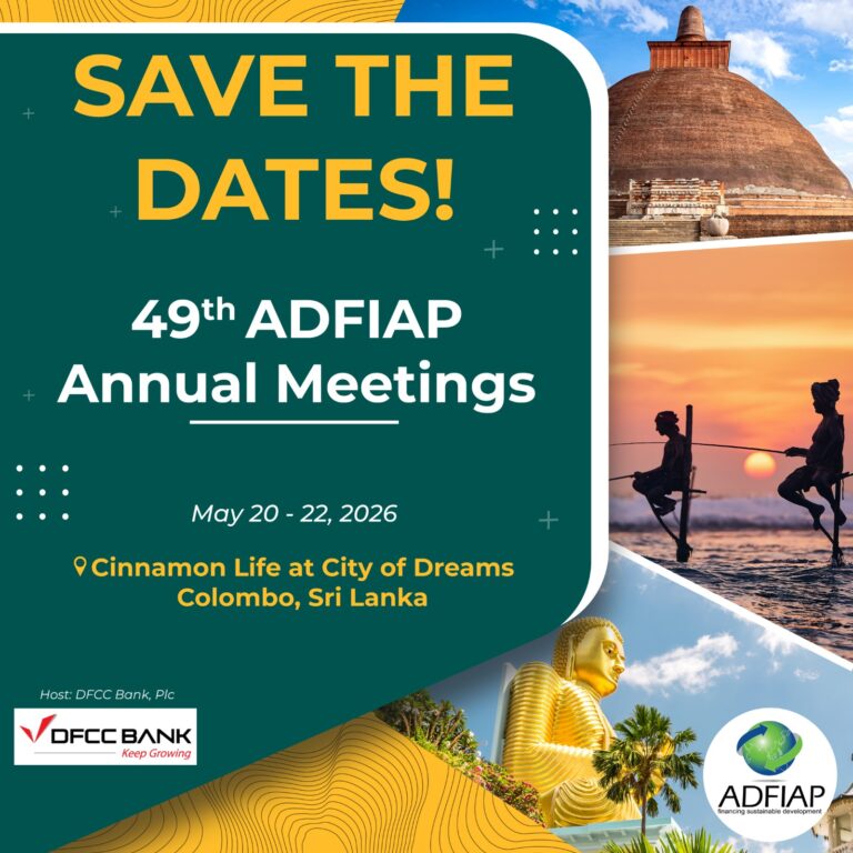 Through the provision of development finance services by its members, ADFIAP envisions a future of sustainable economic, environmental and social development and growth in the region, with its people as the ultimate beneficiary.